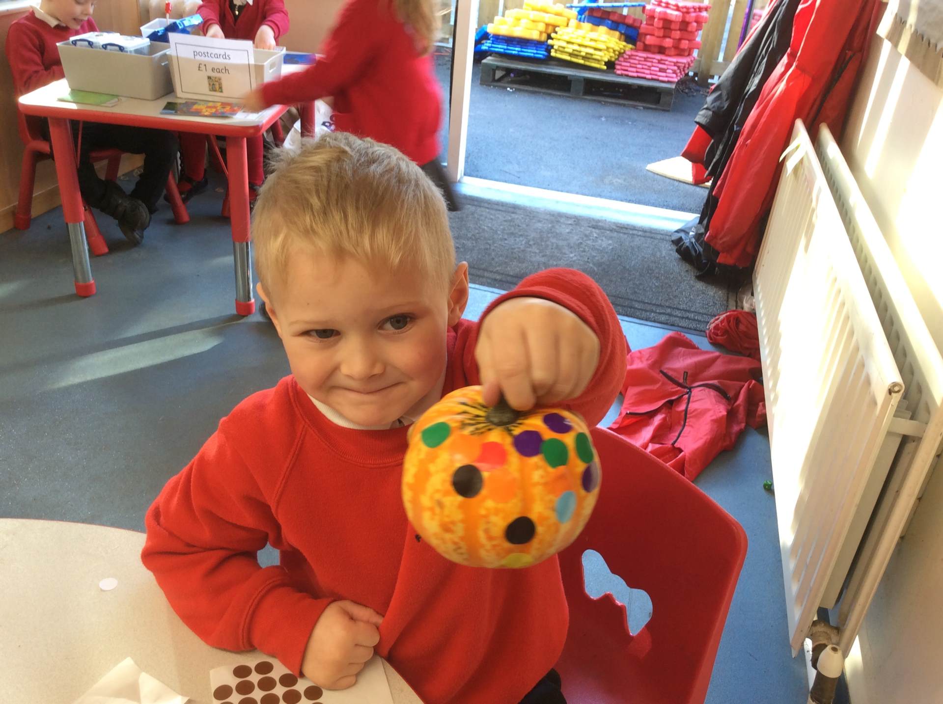 Yayoi Kusama was our featured artist in our second week and we explored pattern and printing alongside her vibrant work. We had coloured stickers which we used to stick onto real objects and around our classroom too and we had circular stamps to create printed art work as well.
